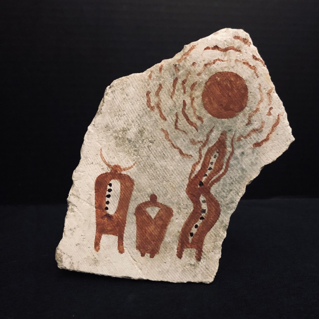 How do I convey messages and lessons for future generations to interpret? Rock art is a manifestation of the human impulse to communicate that transcends time or language barriers and my hope is to share that expression in contemporary spaces as well. While many study these images to only understand the past, my hope is that my work helps my community see a map of where we are going just as much as where we have been. Naletzam (Gratitude