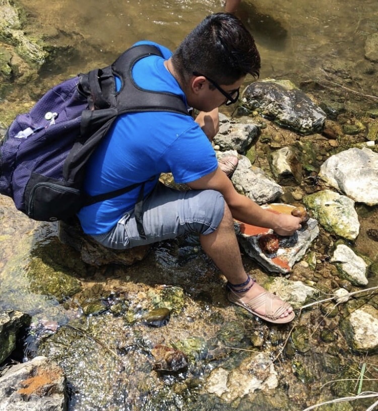 My artistic vision and personal practice are to continue to uplift the decolonial histories of Yanaguana, the ancestral name of the San Antonio River and surrounding land, and the elders who have preserved our cultural practices. The slow process of collecting pigments from the Earth and river, processing them into a fine powder to reconstitute into paints, transports me to place myself in my not-so-distant relatives headspace.